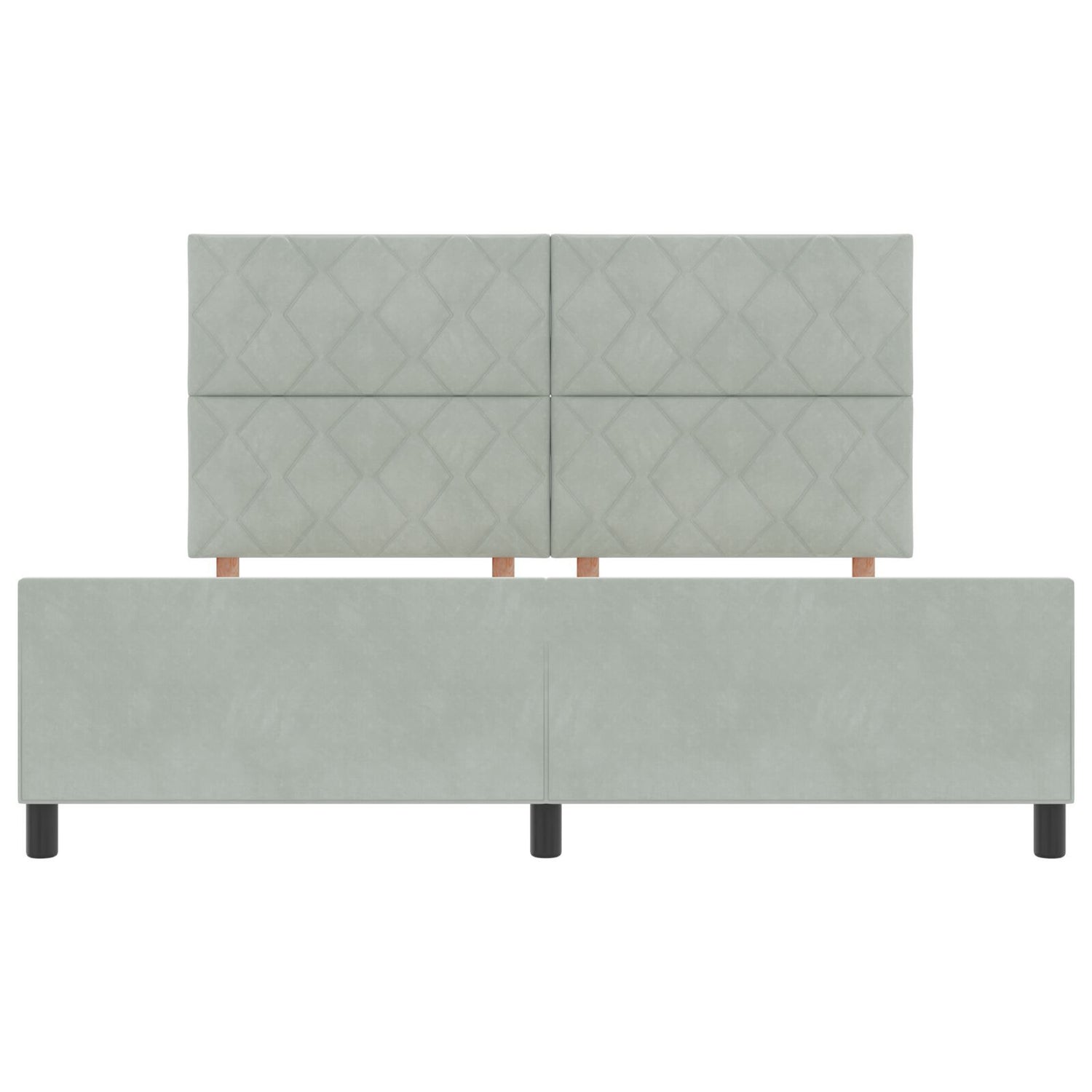 This stylish bed frame mixes modern design with classic comfort, making it the perfect highlight for any bedroom. Its light grey velvet cover and solid engineered wood frame blend good looks and durability, promising you peaceful nights for years to come. Elegant Design: The modern geometric pattern adds a classy touch to any bedroom decor. Soft Velvet Upholstery: The plush fabric gives a warm and inviting feel, making your sleep experience so much nicer. Robust Frame: Made from engineered wood, this bed frame ensures superb stability and support for restful nights. Spacious Size: At 180 x 200 cm, it fits standard mattresses perfectly and easily accommodates two people. Easy Care: A quick wipe with a damp cloth keeps it looking fresh, making maintenance a breeze.