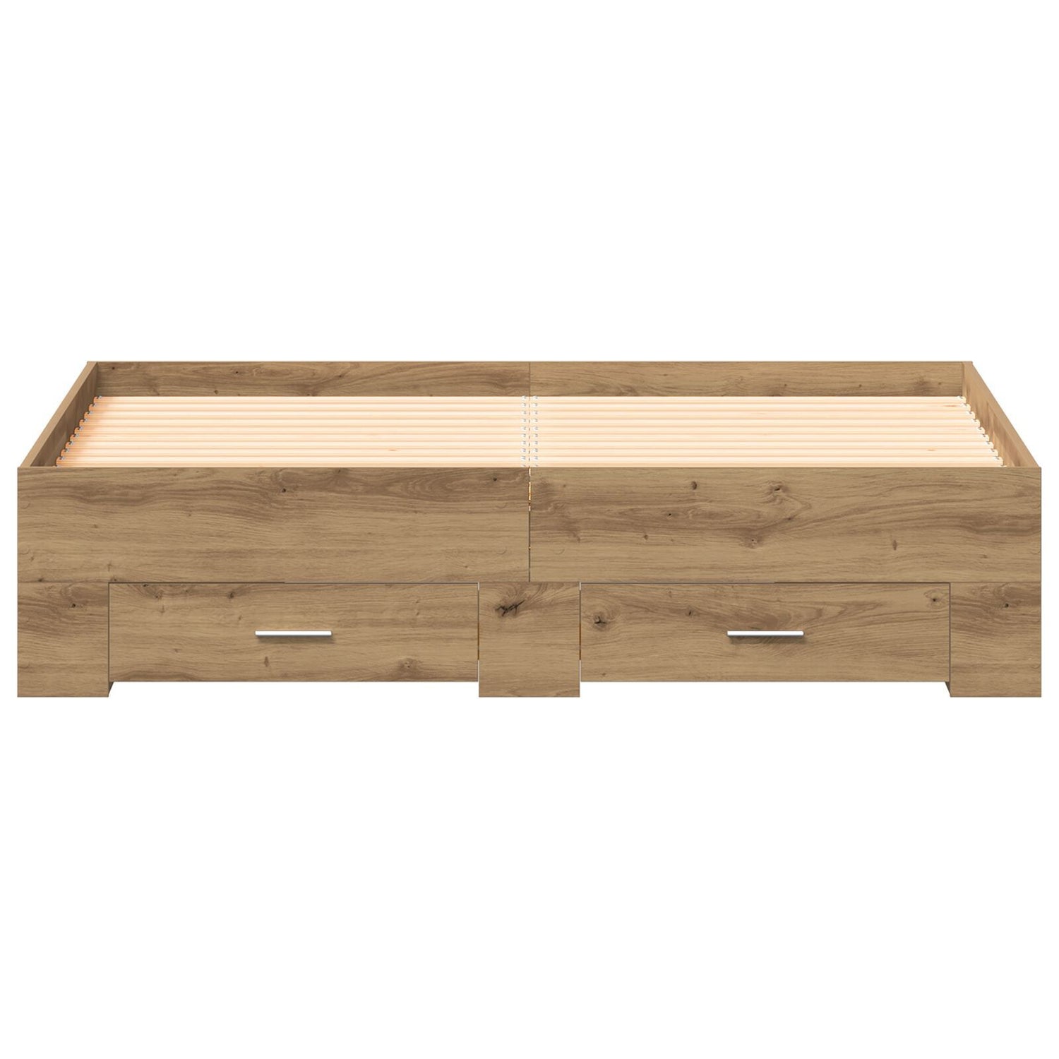 This bed frame mixes style and practicality for a classy vibe in your bedroom. Its modern design sports a rich artisan oak finish that combines elegance with usefulness, ideal for any guest room or comfy master suite. Modern Design: The bed frame boasts a unique artisan oak finish that brings warmth to your bedroom. Its chic style blends well with a range of contemporary decor, creating a stylish and inviting space. Ample Under-Bed Storage: With four large under-bed drawers, this frame creates excellent storage for bedding, clothes, or other essentials, keeping your bedroom tidy and maximizing space. Durable Build: Made from high-quality engineered wood, this frame is built for long-lasting stability and strength, easily accommodating two adults. Optimized Dimensions: Measuring 140 x 190 cm, this frame is just right for a cozy double bed setup. Its compact size is perfect for city living or smaller rooms, ensuring a good night’s sleep.