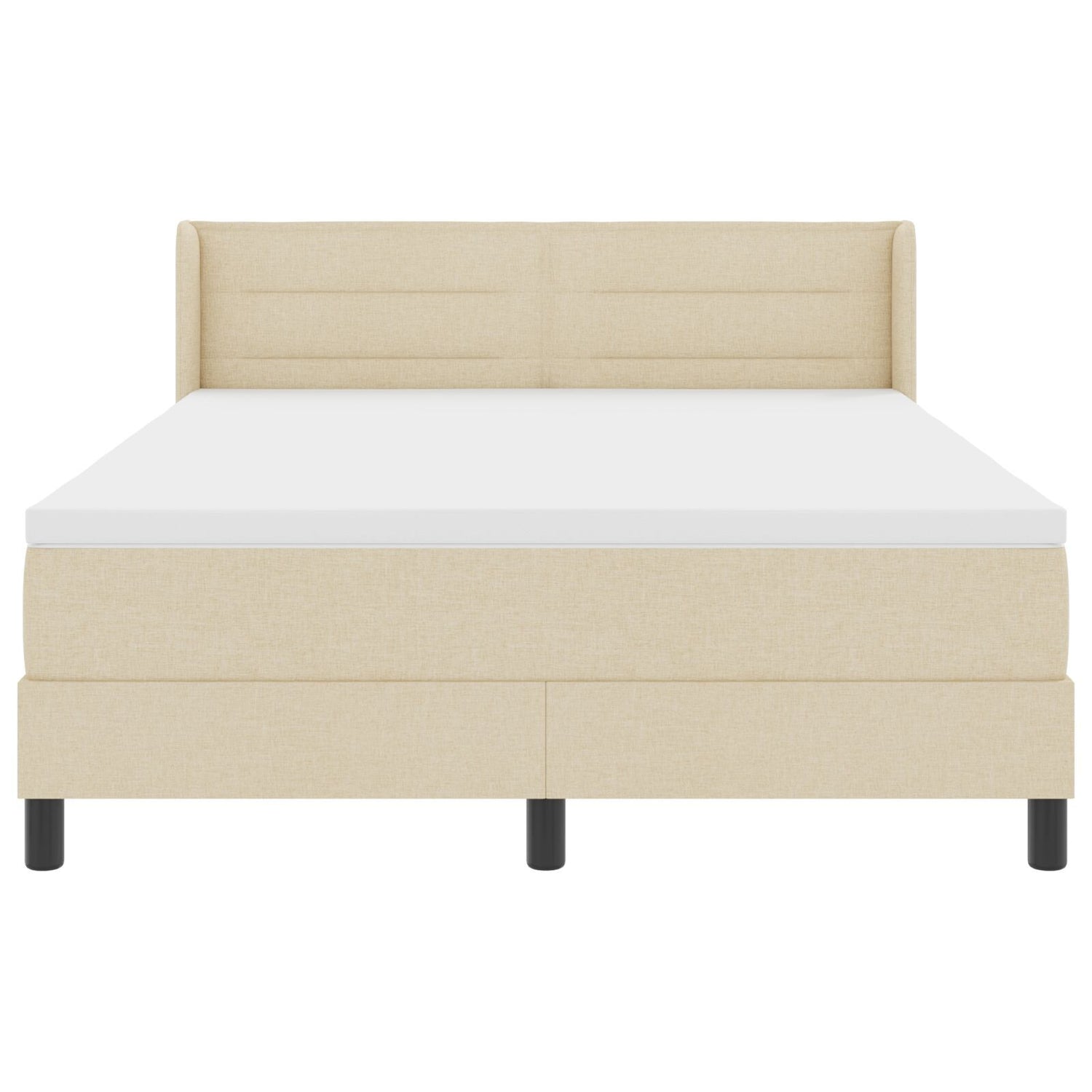 Box Spring Bed With Mattress Cream 140X190 Cm Fabric, Headboard Lines Design Cream 140 Cm Fabric 59830 g