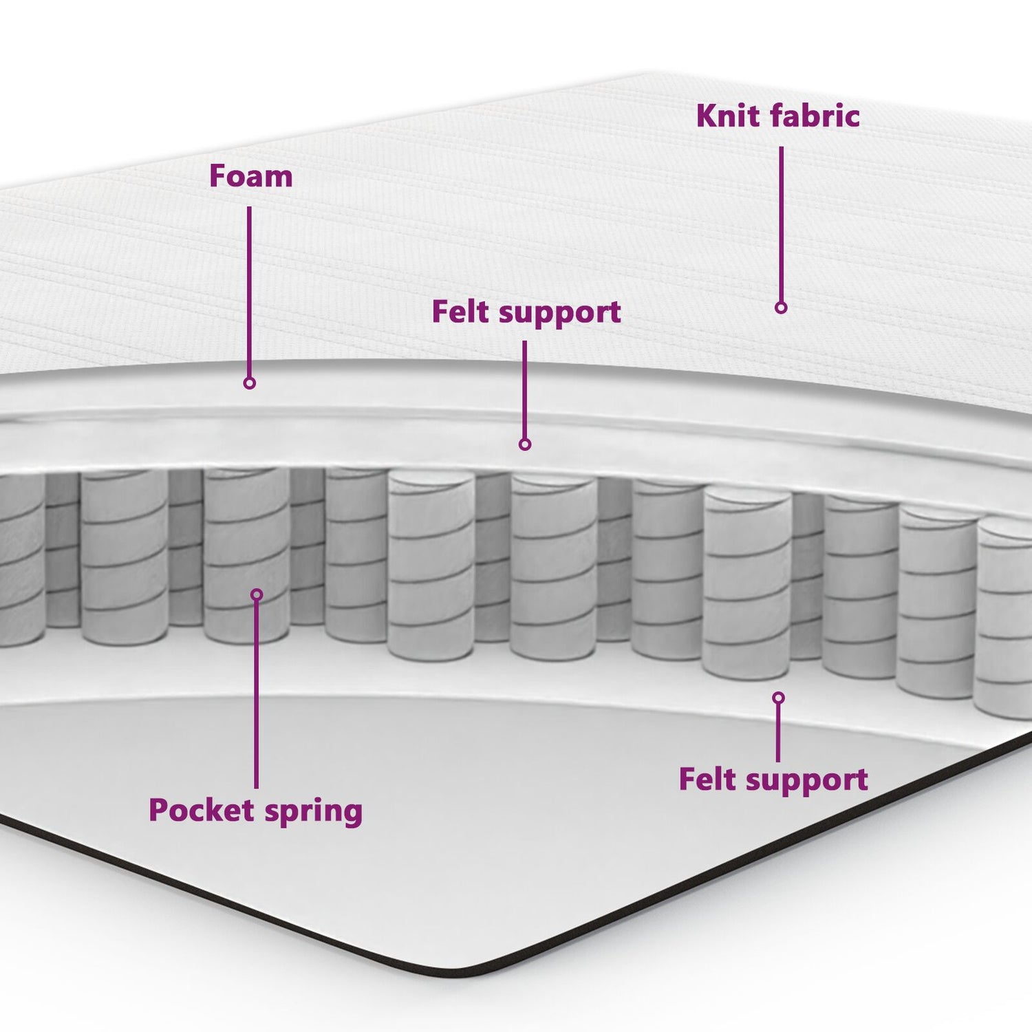- Delivery Contains: 1x Bed frame, 1x Mattress, 1x Mattress topper, 1x Headboard with ears