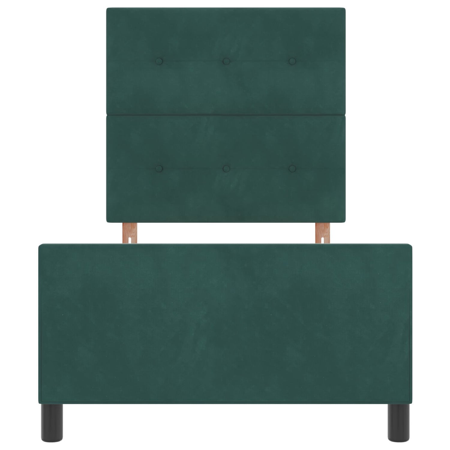 This modern bed frame blends style and comfort, made with natural wood and covered in rich dark green velvet. It's the perfect focal point for any bedroom, with a headboard and footboard that sport a button tufted design, giving it an extra touch of luxury for chill nights and nicely styled spaces. Stylish Look: The dark green velvet not only boosts your bedroom’s style but also matches various decor themes, from minimalist to modern. Quality Make: Built with a solid wooden frame, this bed frame gives you strength and durability while ensuring comfy sleeps. Comfy Backrest: The button tufting on the padded backrest offers extra comfort, great for reading or just lounging in bed. Space Efficient: With dimensions of 80 x 200 cm, it fits nicely in small spots without skimping on comfort, perfect for flats or guest rooms. Low Maintenance: The stain-resistant fabric is super easy to wipe down, keeping your bed frame looking top-notch through time.
