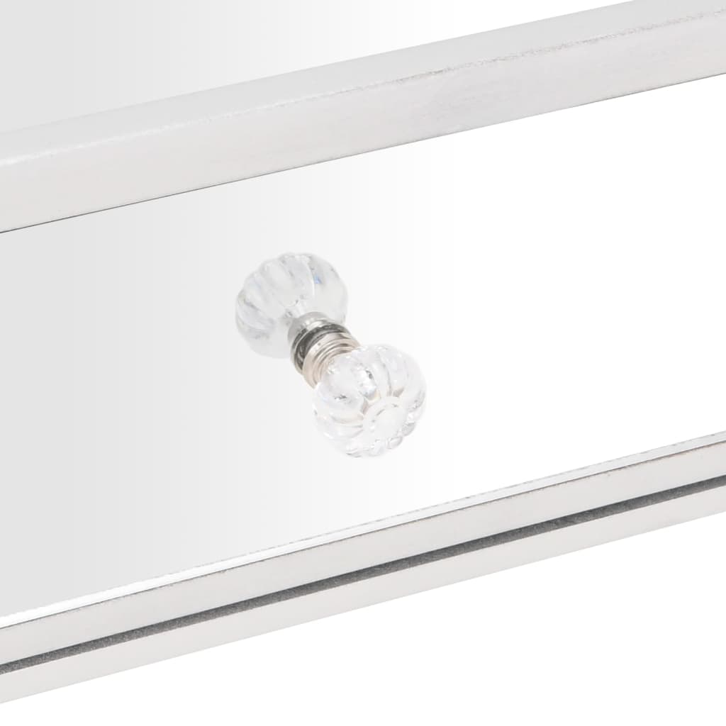This mirrored coffee table is meant to be a touch of elegance to your interior decor. Stylish design: The side table is adorned with sleek mirrored glass and exudes a sophisticated air.Faux crystal knobs: The faux crystal knobs of the sofa table add to its elegant charm and make it easy to open the drawers.Ample storage space: The two drawers of the living room table provide space for keeping all kinds of smaller items organised and within easy reach. Note:Each product comes with an assembly manual in the box for easy assembly.