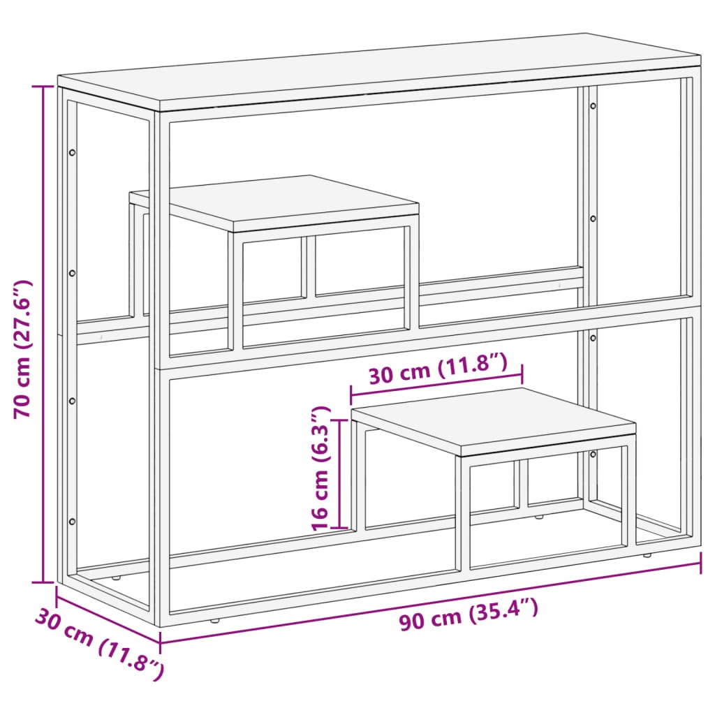 Combining functionality and beauty, this console table will be the focal point of your room. Solid acacia wood top: Solid acacia wood is a beautiful natural material. Acacia wood is a tropical hardwood, which is dense, sturdy, and durable. The top of the sofa table provides a secure and ample surface to place vases, potted plants, or other decorative items.Sturdy and stable frame: The stainless steel frame of the hall table ensures sturdiness and stability.Easy maintenance: This hallway table with stain-resistant surface is easy to wipe clean and you can effortlessly keep the table looking its best.Simple design: This hallway console table has a simple and modern design that complements any room decor. Good to know:Colours and grains vary per furniture item, making each piece unique. The delivery is random, ensuring the exclusivity and individuality of your product.