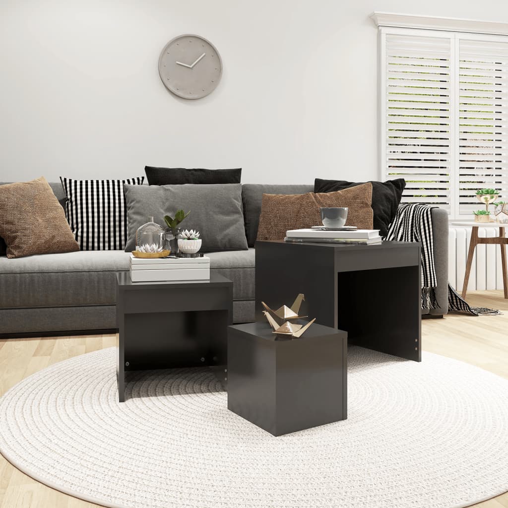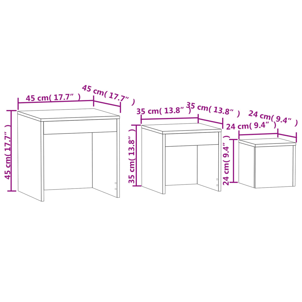 This multipurpose nesting table set is the perfect alternative for small flats or wherever space is a bit limited. The modern design makes this nesting table set a chic addition to your living space. The side tables can be used in the living room to rest your drinks or any other necessities you need close at hand. You can also bring one of them into your bedroom for use as a unique nightstand! Thanks to the difference in size, this nesting table set meets your multiple needs, providing extra space and is easy storage when the smaller tables are hidden under, the bigger one.