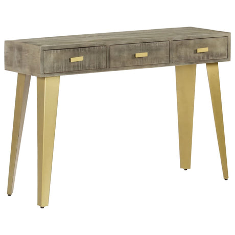 Console Table Solid Mango Wood Grey With Brass 110X35X76 Cm