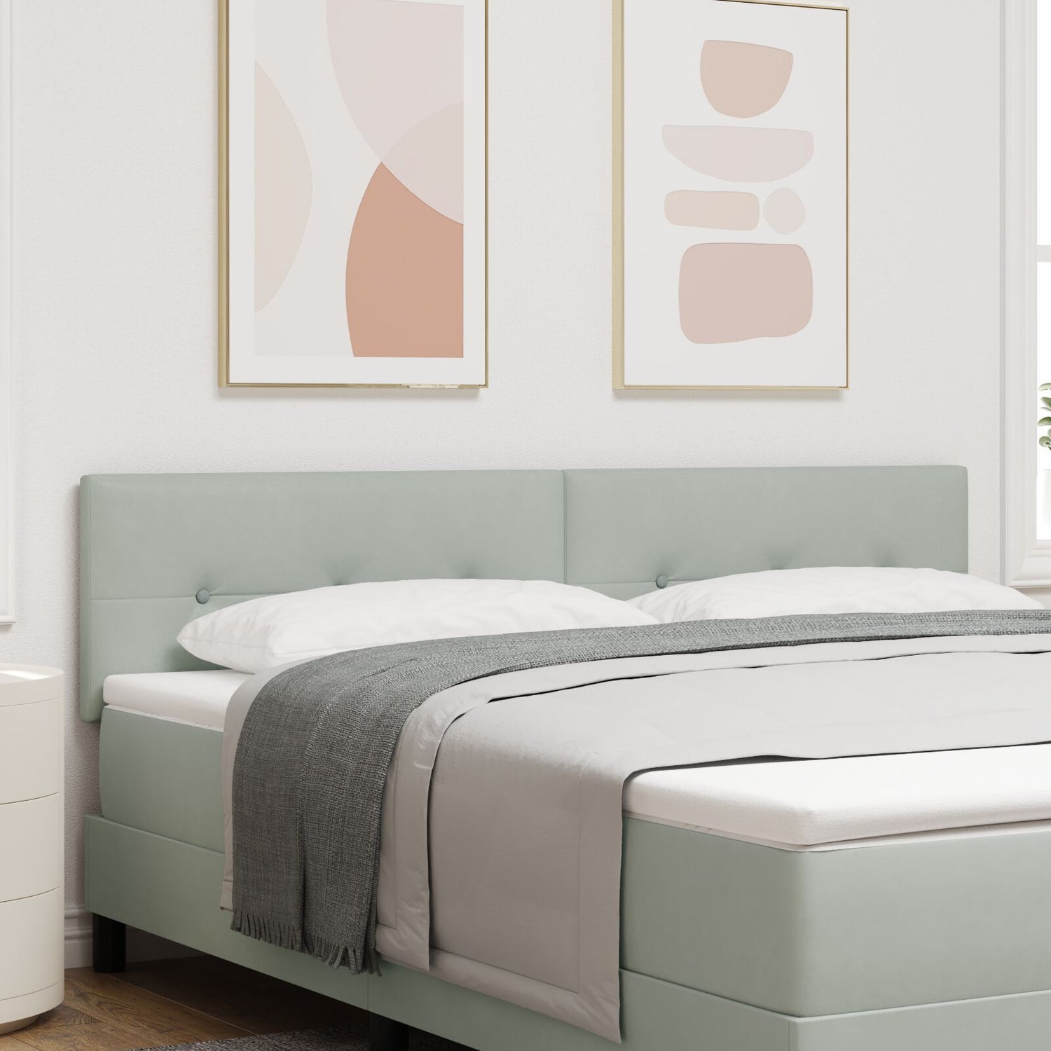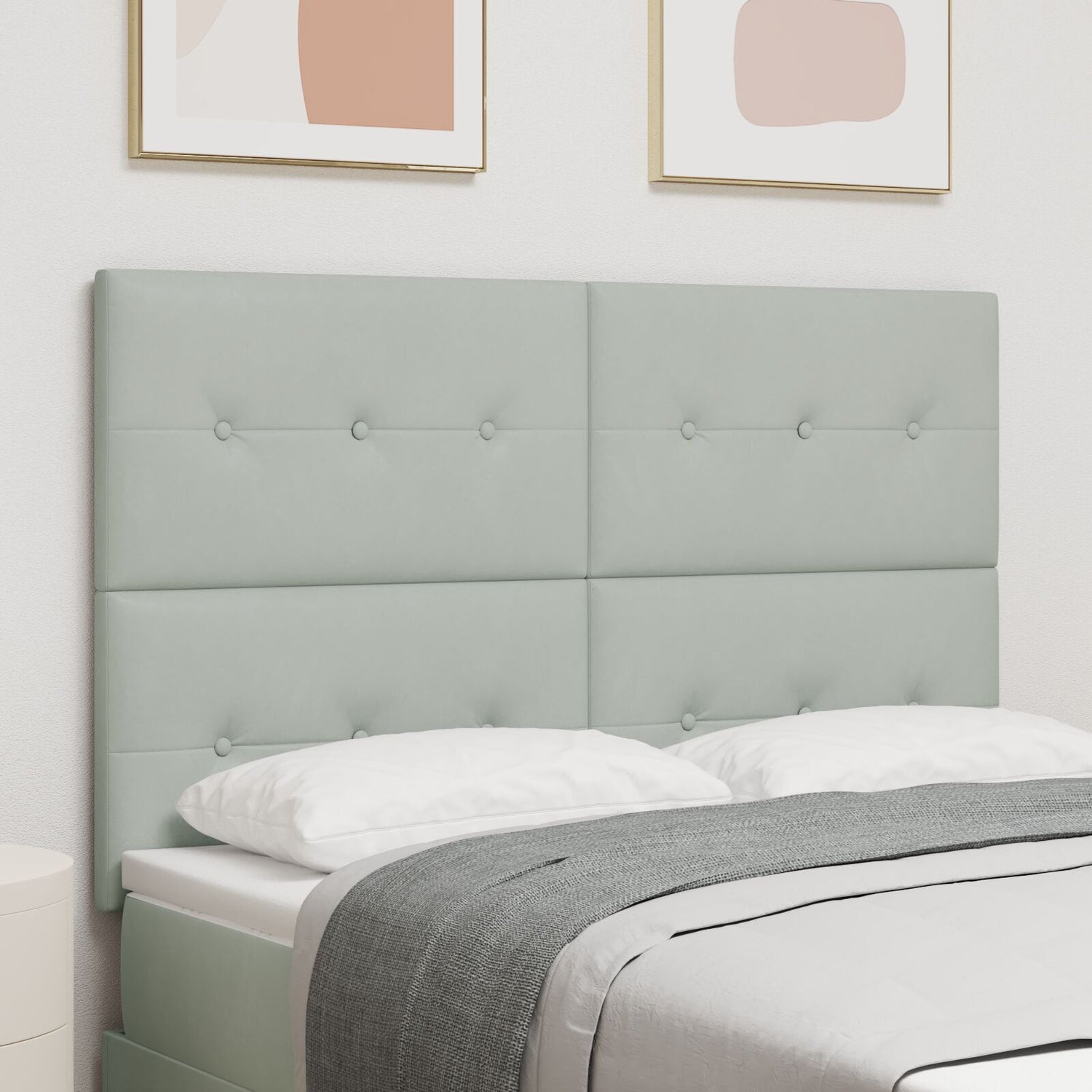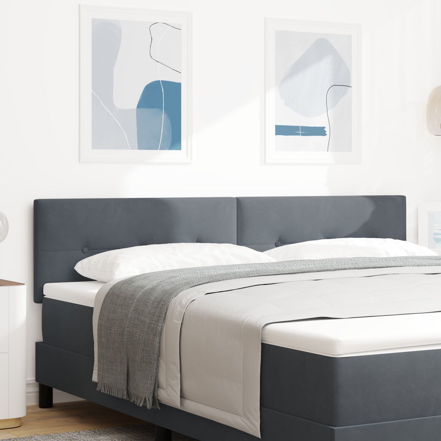 This modern upholstered headboard in light grey not only boosts your bedroom's look but also adds practical features that improve your sleeping experience. It’s designed for adults and suits any gender, with a smooth finish that matches various styles. It's a perfect backdrop to your bed frame, adding elegance whilst ensuring comfort when you relax or read. Made with fade-resistant velvet, this headboard looks great and lasts ages, boosting your room’s style without skimping on quality. The adjustable height feature lets you set the headboard just right, so it aligns with your mattress for the best comfort. Its wall-mounted design saves floor space, perfect for smaller rooms while giving a sleek modern appeal. Built with sturdy square wooden legs, this headboard is strong and won't let you down. At 80 cm wide, it fits double beds like a glove, making it the star of your room makeover.