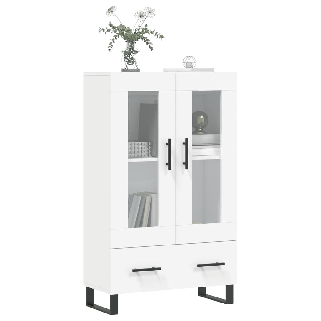 Are you hunting for a stylish highboard? This highboard adds a modern charm to your existing interior! Durable material: The engineered wood is of exceptional quality with smooth surface and also features strength, stability and resistance to moisture. Metal legs: The metal legs add a modern and calm style to your interior while ensuring stability. Ample storage space: The sideboard offers ample storage space for keeping your various daily essentials well organised and within easy reach. Stable and sturdy top: The top of the storage cabinet is perfect for displaying your decorative items, picture frames, and potted plants. Practical design: Your belongings are visible behind the glass door and at the same time protected from dust. In addition, the handles make it easy to open the side cabinet. Warning:To prevent it being overturned, this product must be used with the provided wall attachment device.