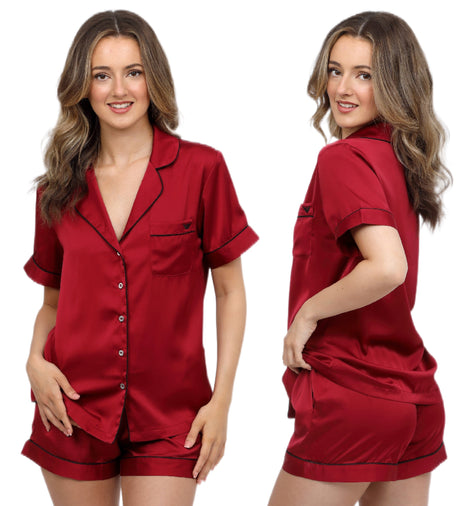 Indulge in Luxury: Dark Claret Silk Satin Pyjama Set