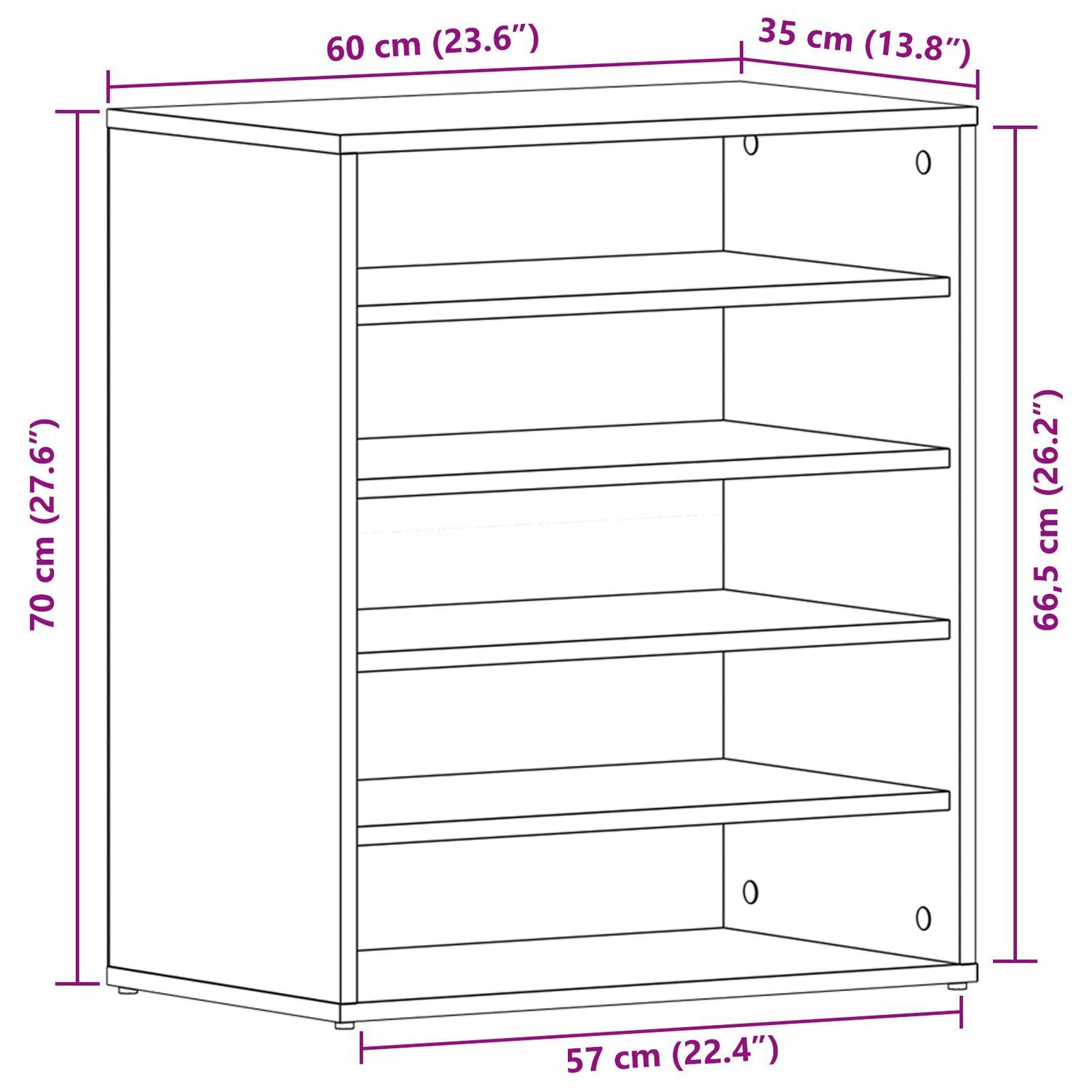 This shoe storage cabinet is a must-have for any modern home, perfect for keeping your entryway, hallway, or bedroom tidy and free of clutter. Made from top-notch engineered wood with a stylish black oak finish, it mixes elegance with practicality, giving you a smart way to store all sort of shoes. Spacious Storage Capacity: This piece boasts four shelves, giving you loads of space to keep a variety of shoes—boots, sneakers, dress shoes—everything stays put. Minimalist Aesthetic: Simple and stylish, it fits right in with modern decor, making it a great addition that enhances your space. Sturdy and Stable Construction: Built with durable engineered wood, this cabinet is designed to last, providing a solid storage solution for your everyday footwear. Efficient Installation: Comes with easy-to-follow instructions for quick assembly—just grab a screwdriver, and you're good to go! Thoughtful Dimensions: At 60 cm long, 35 cm wide, and 70 cm high, it's designed to maximize space while still offering loads of storage for your shoes.