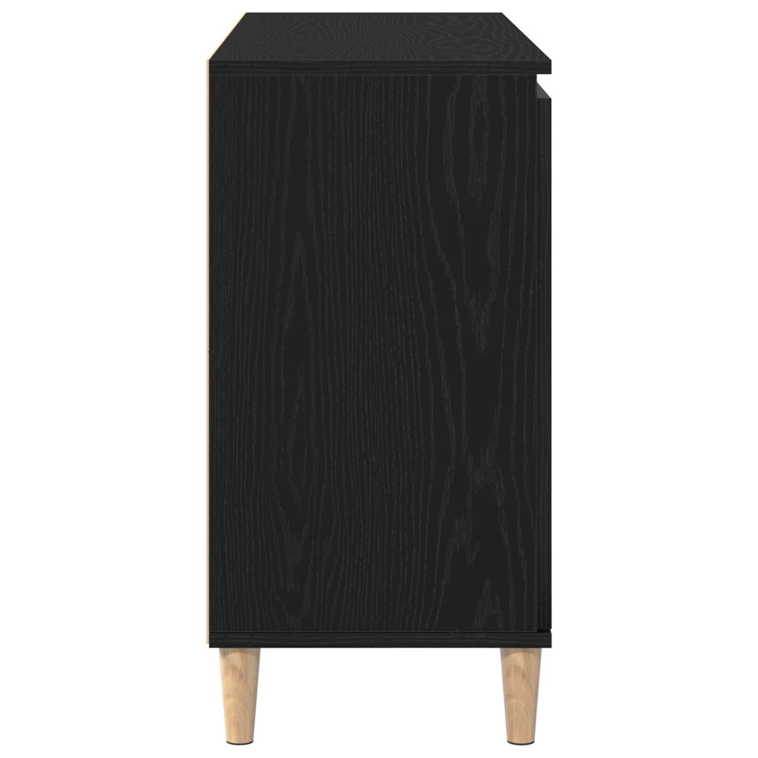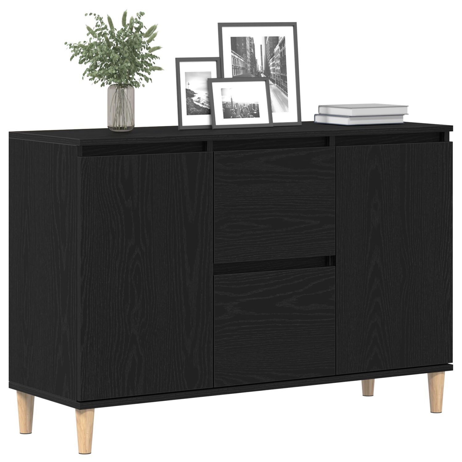 This modern sideboard's sleek rectangular shape makes it stylish and functional, fitting right into any living room or dining area. The smart black oak finish and rich brown accents give it a classy look, perfect for keeping all your bits and pieces stored away. Plenty of Storage: With four compartments, this sideboard gives you loads of space, keeping things tidy. The dual hinge doors let you grab what you need quickly while looking sharp. Sturdy Build: Crafted from quality engineered wood and solid eucalyptus, this sideboard is made to last, ready for daily use. Chic Design: The modern design fits in with all styles, making it a useful and stylish addition to your home. Easy to Assemble: Comes with clear instructions and basic tools, so you can set it up without any fuss. Functional Dimensions: At 101 cm long, 35 cm wide, and 60 cm high, it's just the right size to fit into any space without being overbearing.
