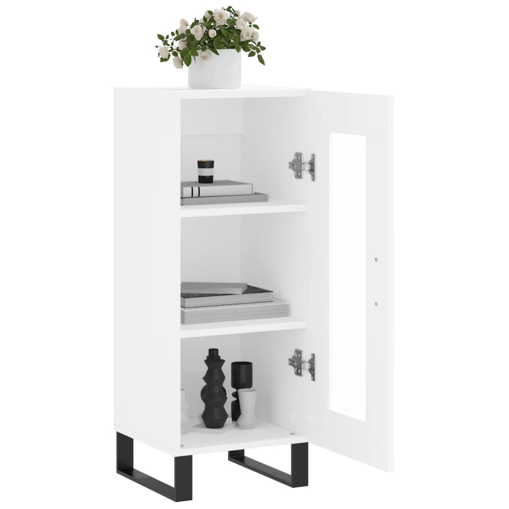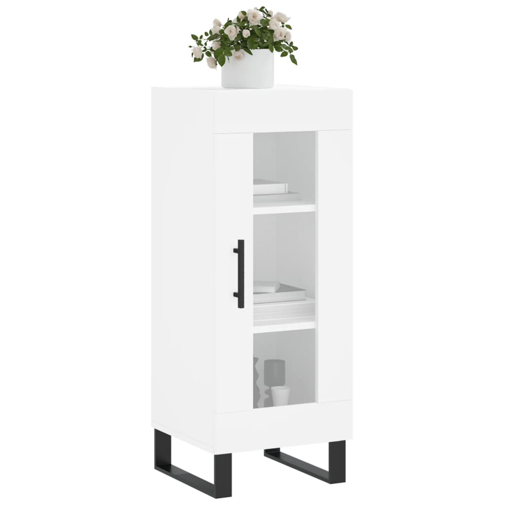 This classic sideboard, featuring a timeless look, is meant to be an excellent addition to your home. Durable material: The engineered wood is of exceptional quality with a smooth surface and features strength, stability and resistance to moisture.Ample storage space: The cabinet offers ample storage space for keeping your various daily essentials well organised and within easy reach.Displaying function: You can also place your favourite photos, decorations or flowers on top of the storage cabinet to enrich your life.Practical design: The cupboard features a glass door, which allows you to see your items clearly and find them easily. Warning:To prevent it being overturned, this product must be used with the provided wall attachment device.