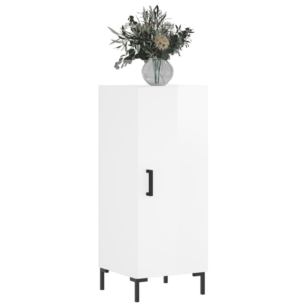 This modern sideboard, featuring a timeless look, is meant to be an excellent addition to your home. Durable material: The engineered wood is of exceptional quality with smooth surface and also features strength, stability and resistance to moisture. Metal legs: The metal legs add a modern and calm style to your interior while ensuring stability. Ample storage space: This sideboard cabinet is designed with 3 compartments to keep things organised and within easy reach. Stable and sturdy top: The top of the cupboard is perfect for displaying your decorative items, picture frames, and potted plants. Practical door: Keep your essentials free from dust by hiding them behind the door. In addition, the handle on the door makes it easy to open the storage cabinet. Warning:To prevent it being overturned, this product must be used with the provided wall attachment device.