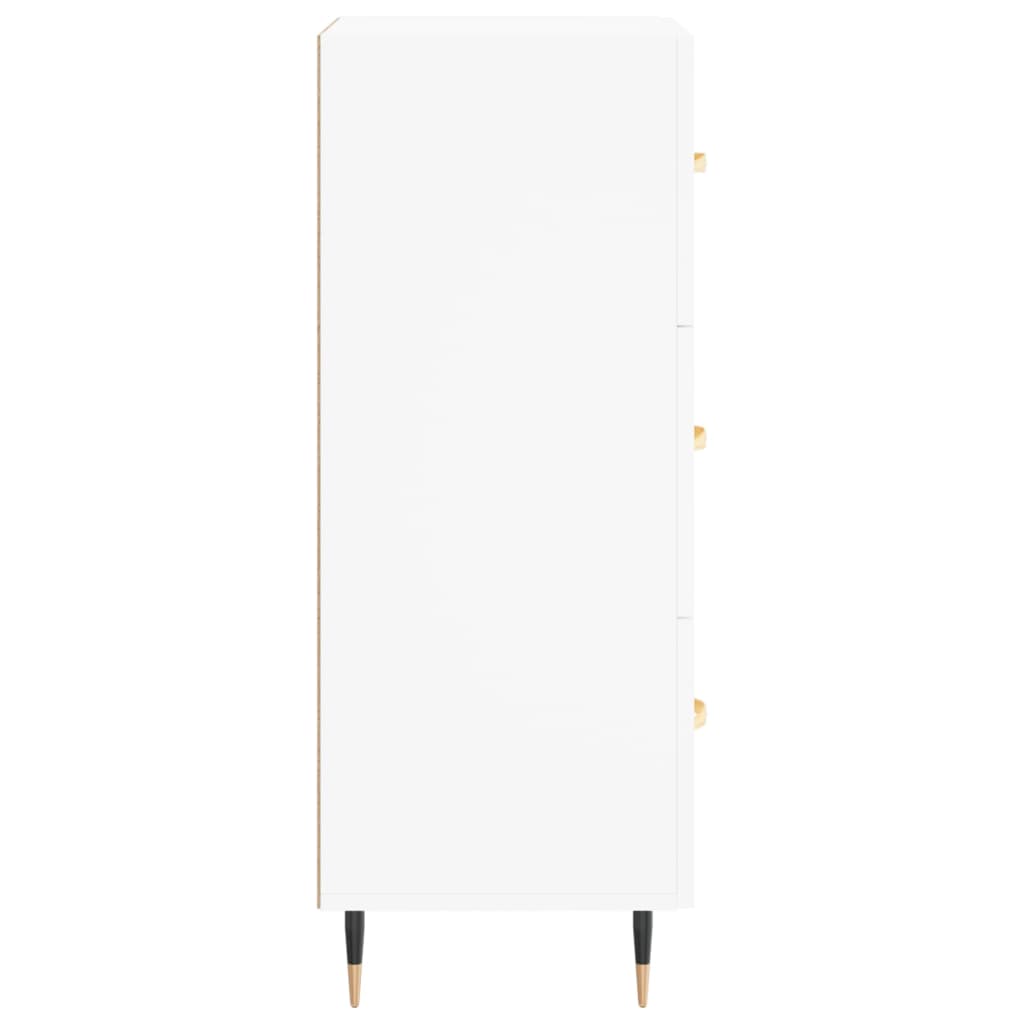 This modern sideboard, featuring a timeless look, is meant to be an excellent addition to your home. Durable material: The engineered wood is of exceptional quality with smooth surface and also features strength, stability and resistance to moisture. Metal legs: The metal legs add a modern and calm style to your interior while ensuring stability. Ample storage space: This sideboard cabinet is designed with 3 drawers to keep things organised and within easy reach. Stable and sturdy top: The top of the cupboard is perfect for displaying your decorative items, picture frames, and potted plants. Warning:To prevent it being overturned, this product must be used with the provided wall attachment device.