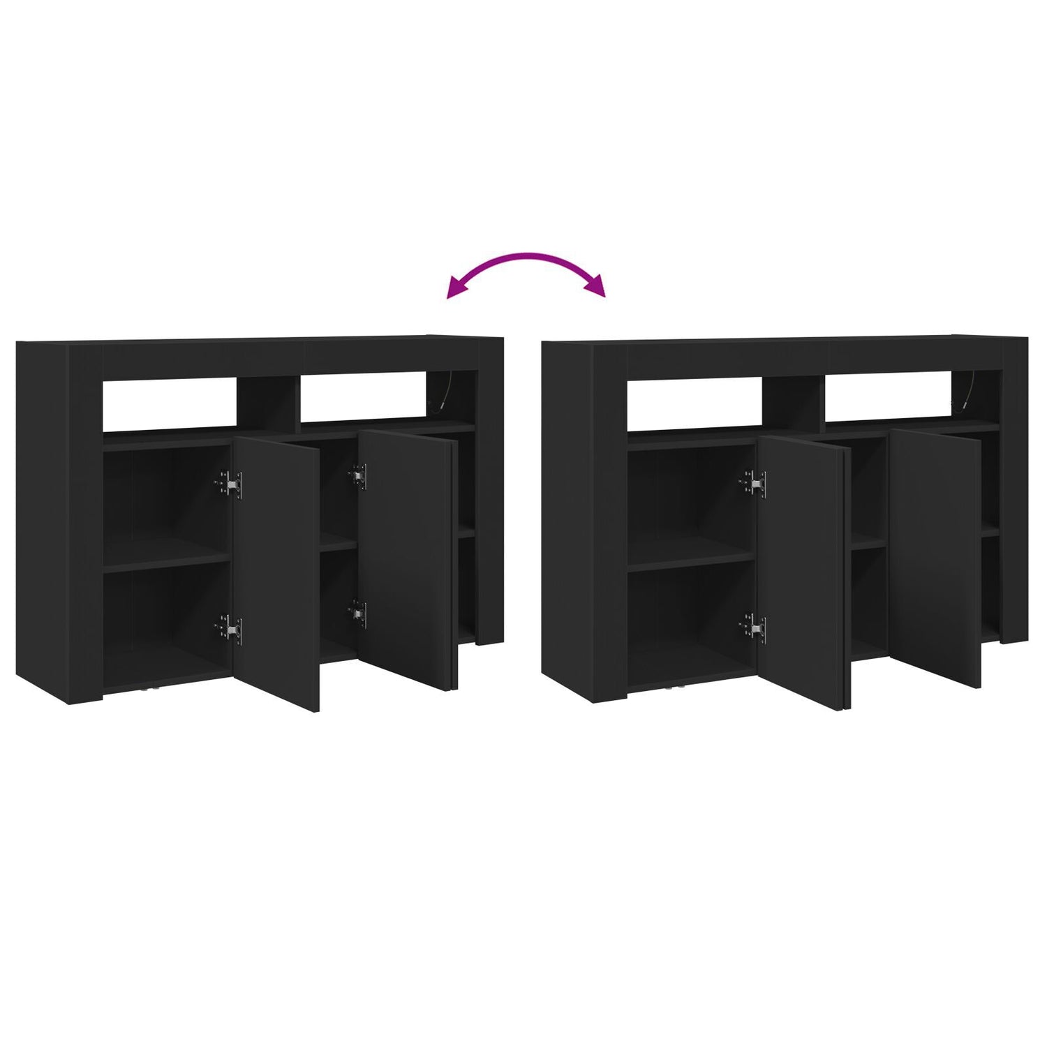 This Modern Black Sideboard is a flexible addition to any home, mixing practicality with slick looks. It’s perfect for living rooms or dining areas, boasting a minimalist design with a stunning black finish, plus LED lighting that creates a warm atmosphere, just right for entertaining friends or family. Ample Storage Space: The sideboard boasts eight compartments, giving you loads of space for dinnerware, gadgets, or decorative items. It keeps everything tidy while letting your personality shine through your selected decor. Integrated LED Lighting: With funky LED strip lights, this sideboard brightens up your space and offers adjustable mood lighting for different occasions, whether you’re entertaining mates or enjoying a quiet night. Contemporary Appearance: Its modern, rectangular shape with clean lines makes it a sophisticated centrepiece in any room, effortlessly fitting in with various interior styles and complementing your home’s look. Durable Material: Made from engineered wood, this sideboard is built to last and resist wear and tear. The smooth surface is not just nice to look at, but also makes cleaning a breeze. Easy Assembly: It comes with everything you need for setup. With clear instructions, two people can quickly put it together, so it’s ready to roll in no time.