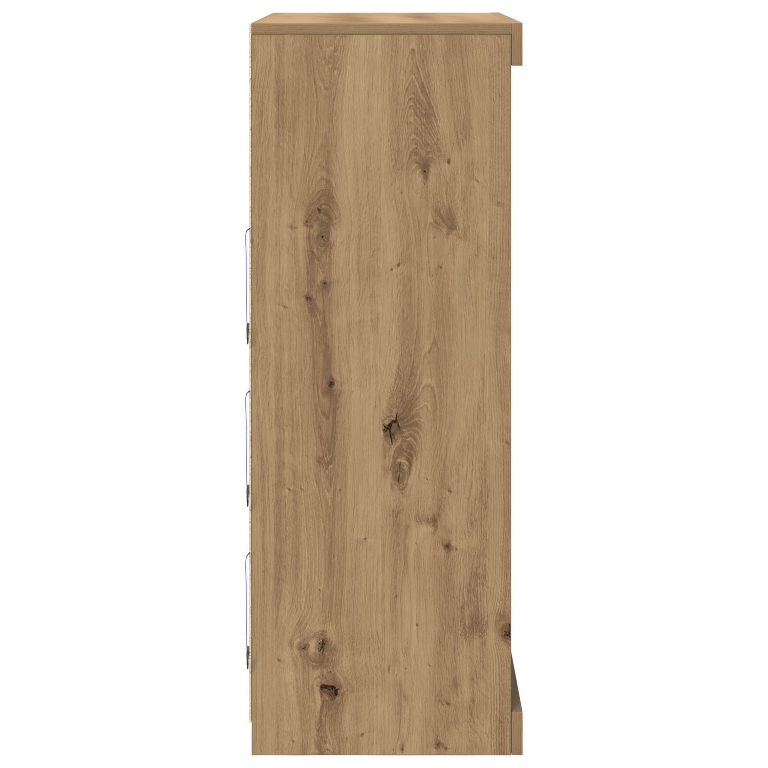 Meet the vidaXL Sideboard with LED Lights, beautifully finished in Artisan Oak. It's perfect for showing off your favourite things while keeping everything tidy. This handy sideboard has a modern style and loads of storage with its six floating glass shelves—ideal for any dining room or living room.