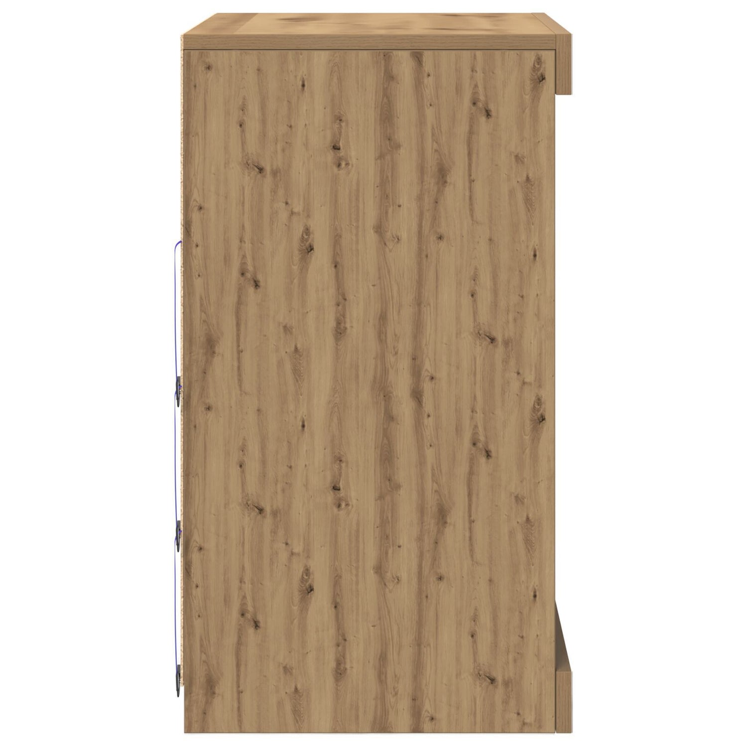 The Modern Rectangular Sideboard is a fab addition to any dining or living space. It's got a stylish look that's both useful and good to look at. Made from solid oak wood in a rich artisan oak finish, it stands out while offering plenty of storage. It's essential for anyone who loves elegance and practicality. Ample Storage: One big storage unit helps keep your home organised and everything you need within easy reach. Elegant Design: This stylish modern look fits various decor styles, making your space even prettier, whether for a party or a casual hangout. Durable Construction: Made from solid oak wood, this piece is built to last and looks great doing it. Glass Shelves: With three clear glass shelves, this sideboard adds sophistication and allows you to display items beautifully. Easy Maintenance: Just wipe it with a damp cloth for hassle-free cleaning and keep it looking brilliant.