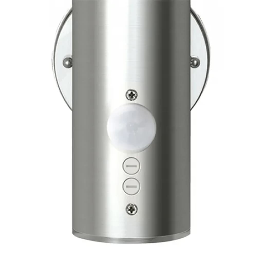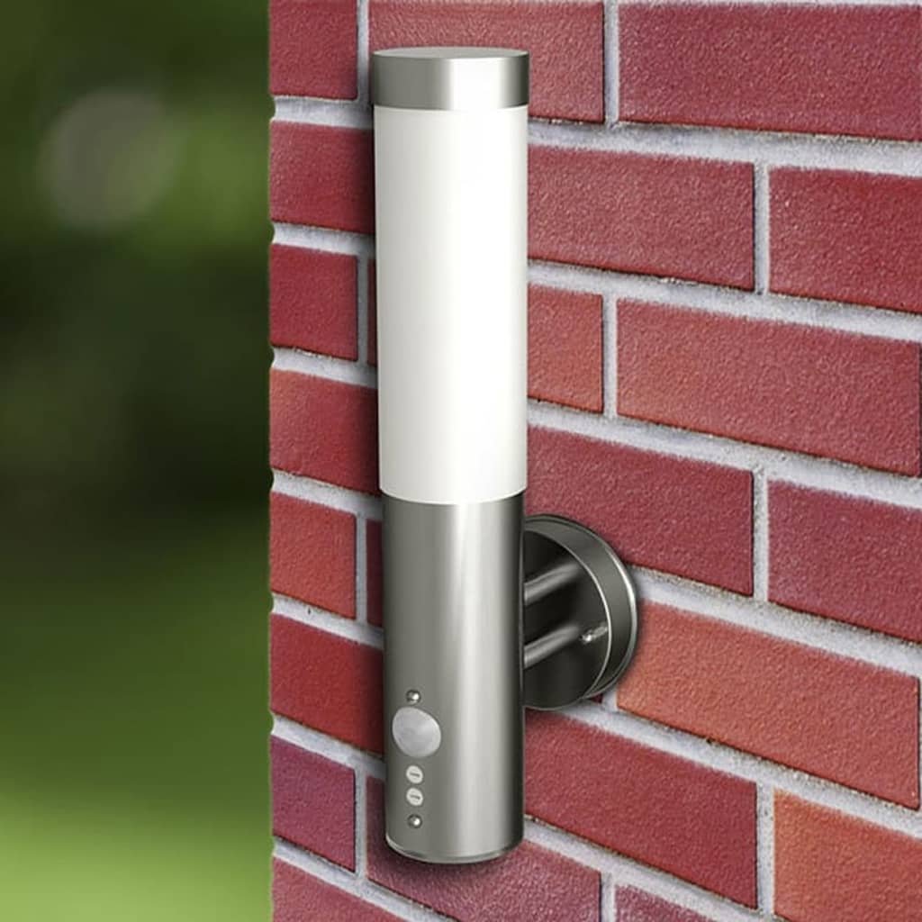 Thesewall lights are made of stainless steel and can easily be attached to yourwalls and fence. The lamps give a beautiful dimmed light thanks to theirfrosted glass. The wall lights are suitable for (energy saving) bulbs with anE27 fitting. The motion detector makes the lights turn on automatically whensomeone walks by.