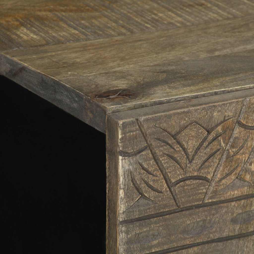 This stylish bathroom furniture set is an excellent addition to your bathroom, giving it a tidy and striking appearance! Robust and stable material: Solid mango wood, a robust tropical hardwood, is highly favoured for furniture making for its exceptional durability and strength. Its beautiful wood grains make every piece of furniture slightly different from the next.Durable material: This wall mirror is made of glass surrounded by a solid mango wood frame, ensuring stability and durability.Hand-carved pattern: The delicately carved pattern gives the bathroom cabinet a unique look.Practical cabinet top: The top of the sink cabinet has a hole, so it is ideal for placing the sink.Ample storage space: The bathroom storage cabinet offers ample space to easily accommodate your essential toiletries and bath items such as soaps, shampoo, toothpaste, etc. Warning:To prevent it from tipping over, this product must be used with the provided wall attachment device. Good to know:Each item is unique with variations in colours and grains. The delivery is random, ensuring the exclusivity and individuality of your product.Screws and plugs for inside the wall are not included. We advise to find and use screws and plugs suitable specifically for your walls. If you're not sure, you can consult with a professional. Please read and follow each step of the instructions.