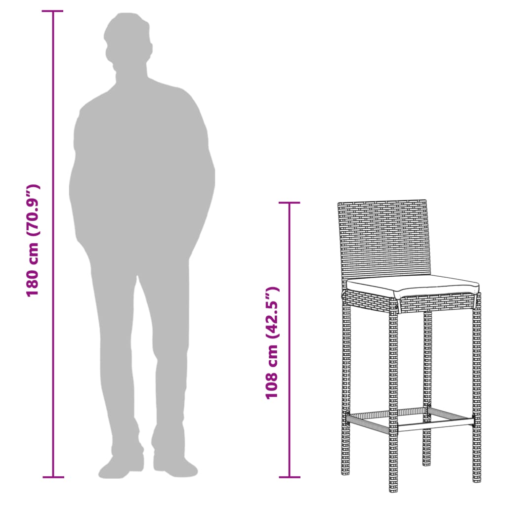 This garden bar set with an elegant and contemporary design will be a great choice for dining or relaxing in the garden. Durable material: PE rattan, also known as poly rattan, is a strong, low-maintenance synthetic material that looks like natural rattan. It's lightweight, easy to clean, and commonly used for outdoor furniture due to its durability and weather-resistant properties. Made of lightweight PE rattan, these bar stools are sturdy and easy to move. Sturdy tabletop: Solid acacia wood is a beautiful natural material. Acacia wood is a tropical hardwood, which is dense, sturdy, and durable. Made of solid acacia wood, this bar table is sturdy and stable. You can place your snacks, drinks and any of your favourite decorations. Comfortable seating experience: The thickly padded seat cushions and the built-in footrests add additional seating comfort for the stool. Removable and washable cover: These seat cushions feature removable covers for easy washing and maintenance. Good to know:To make sure your outdoor furniture stays beautiful, we recommend protecting it with a waterproof cover.