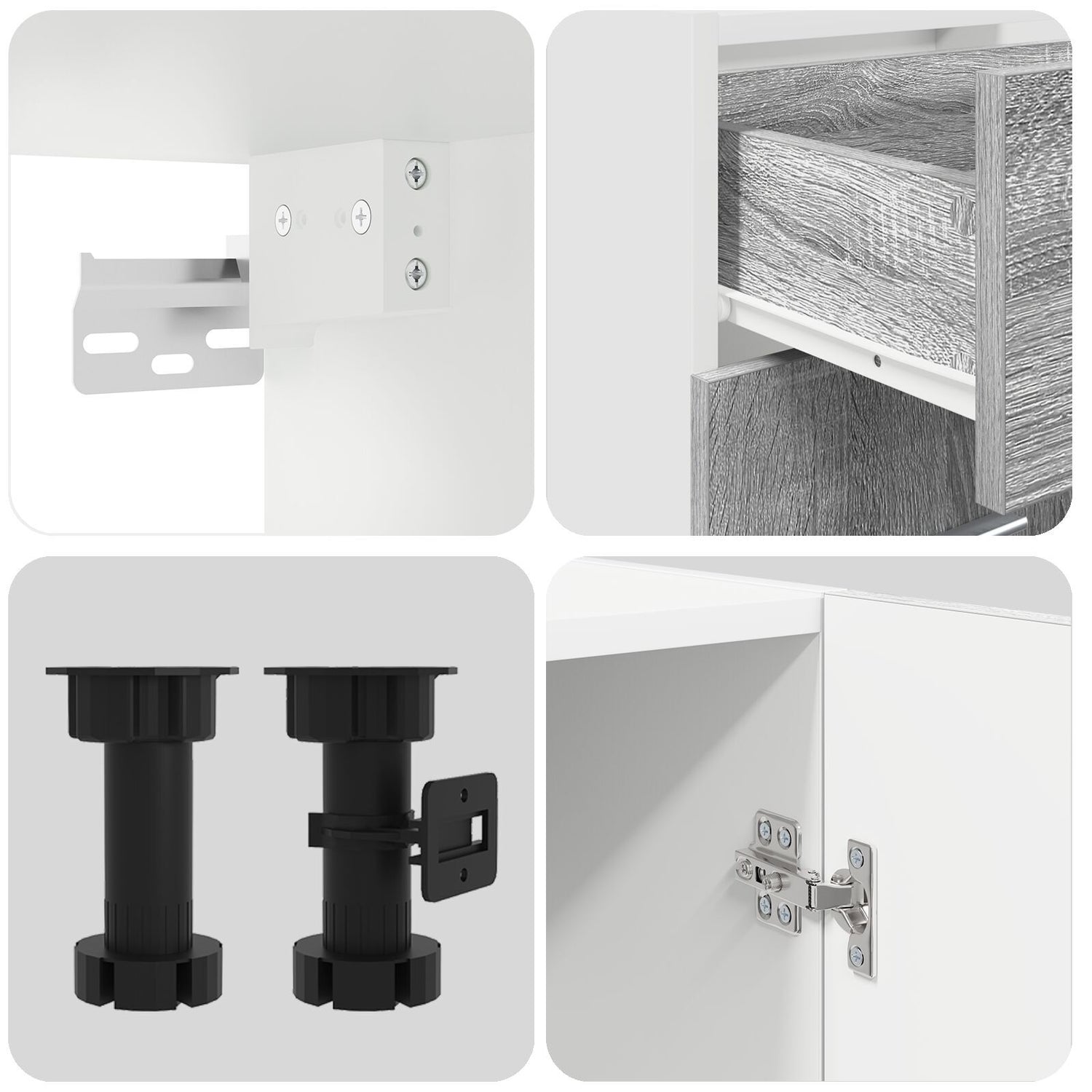 This kitchen cabinet set flaunts a sleek grey sonoma finish that adds modern charm to any kitchen. It's ideal for food prep and perfectly balances functionality with style, turning your kitchen into a fab space for cooking and entertaining. Ample Storage: Loads of compartments keep your kitchen essentials organized and tidy, making meal prep a breeze. Sturdy Construction: Made from engineered wood, each cabinet is built to last. This set can handle daily use while looking sharp. Versatile Design: The wall-mounted feature keeps things looking neat and tidy while making your kitchen space more accessible. Great for small kitchens or open-plan layouts. Modern Aesthetics: The grey sonoma and clean lines give a contemporary feel that fits any home style, effortlessly upgrading your kitchen decor. Easy Maintenance: Simply wipe down with a damp cloth as per care instructions to keep it looking fresh and fab.