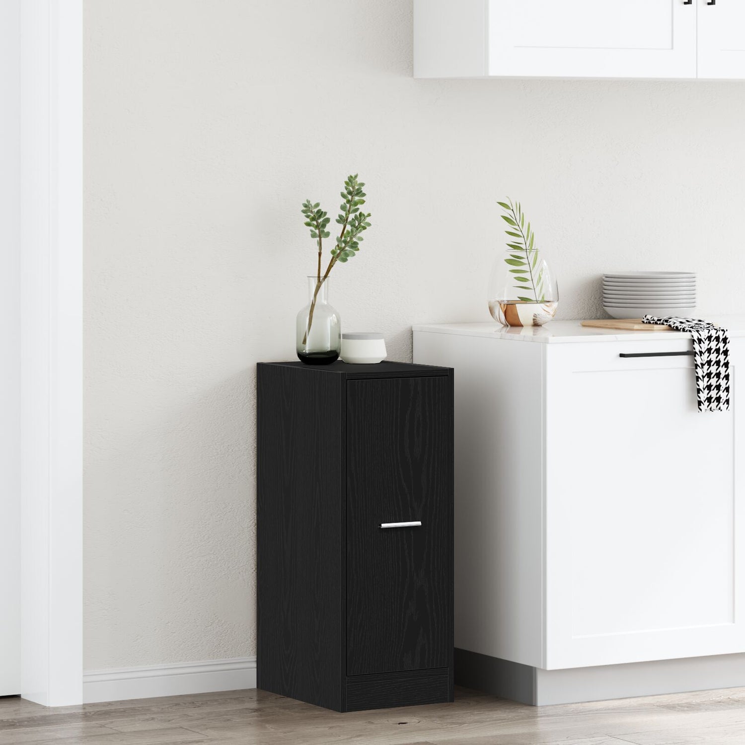 This apothecary cabinet with a practical design is a real eye-catcher for your home decor. Long-lasting material: The engineered wood is of exceptional quality with a smooth surface and also features strength, stability, and resistance to moisture.Ample storage space: The apothecary chest with drawers offers ample storage space for keeping your various daily essentials well organised and within easy reach.Easy to maintain: Thanks to its smooth surface, the storage cabinet is easy to clean with a damp cloth and requires less maintenance.Wide applications: This apothecary cabinet could be used as a pharmacy cabinet, storage cabinet, or drawer cabinet in the kitchen, living room, or office, depending on your needs. Warning:To prevent it from tipping over, this product must be used with the provided wall attachment device.