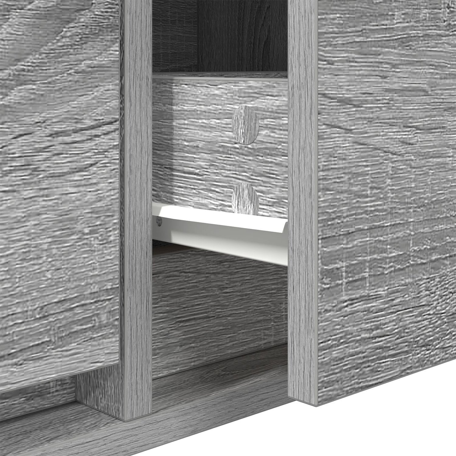 This wall-mounted TV cabinet adds a modern touch to any living room or bedroom with its chic grey sonoma finish. Its rectangular shape and smooth surface not only improve your interior but also give you solid storage solutions, making it a brilliant pick for anyone after a stylish but practical storage option. Space-Saving Design: Mounting this cabinet on the wall frees up floor space while giving your walls a sleek appearance. Perfect for small flats or rooms where every bit of space counts. Ample Storage: With two easy-gliding drawers, this cabinet is spot-on for stashing remote controls, games, or other living room essentials. The smooth slide feature makes it easy to grab what you need. Stylish Look: The modern grey finish of this cabinet blends in nicely with different interior styles, adding a contemporary yet simple touch to your space. Durable Construction: Built from high-quality engineered wood, this cabinet is made to last. Its tough material means it holds up against daily wear while keeping that nice appearance. Ease of Assembly: Comes with simple assembly instructions and all the mounting bits you need, so you can get it set up quickly and easily, ready to use in no time.