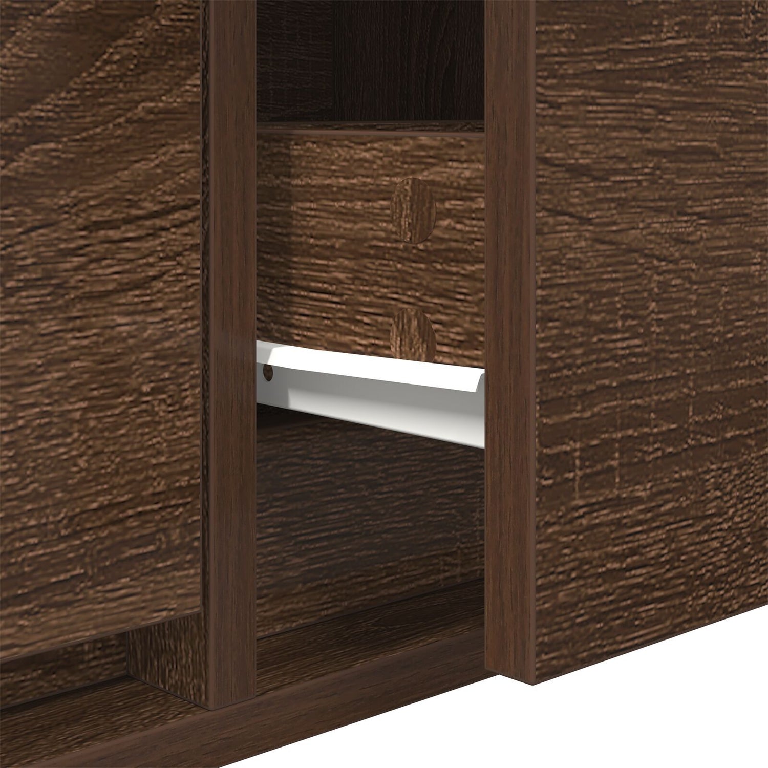 This Modern Wall-Mounted TV Cabinet is all about style and practicality, perfect for making your living space look great. With its sleek brown oak finish and sturdy engineered wood build, it’s got loads of storage and matches both modern and traditional styles. Space Efficiency: Wall-mounted design maximises floor space, making it ideal for compact areas. Its raised structure clears up valuable floor space and gives your room a sleek, tidy vibe. Stylish Appearance: The cabinet’s lovely brown oak finish adds a warm touch, fitting in with different interior styles. Its modern look has clean lines and is simple, making it a highlight without taking over the whole space. Smooth Operation: The two drawers are designed to slide open smoothly, giving you easy access to your media gear and essentials. This feature makes it super convenient for quick grabs or stashing things away. Robust Construction: Built from tough engineered wood, this cabinet will last through years of daily use. It handles wear and tear well while still looking good. Versatile Use: This cabinet is made for many settings, like living rooms and bedrooms. Its functional design can hold TVs, decorative items, and more, meeting all your organisational needs.