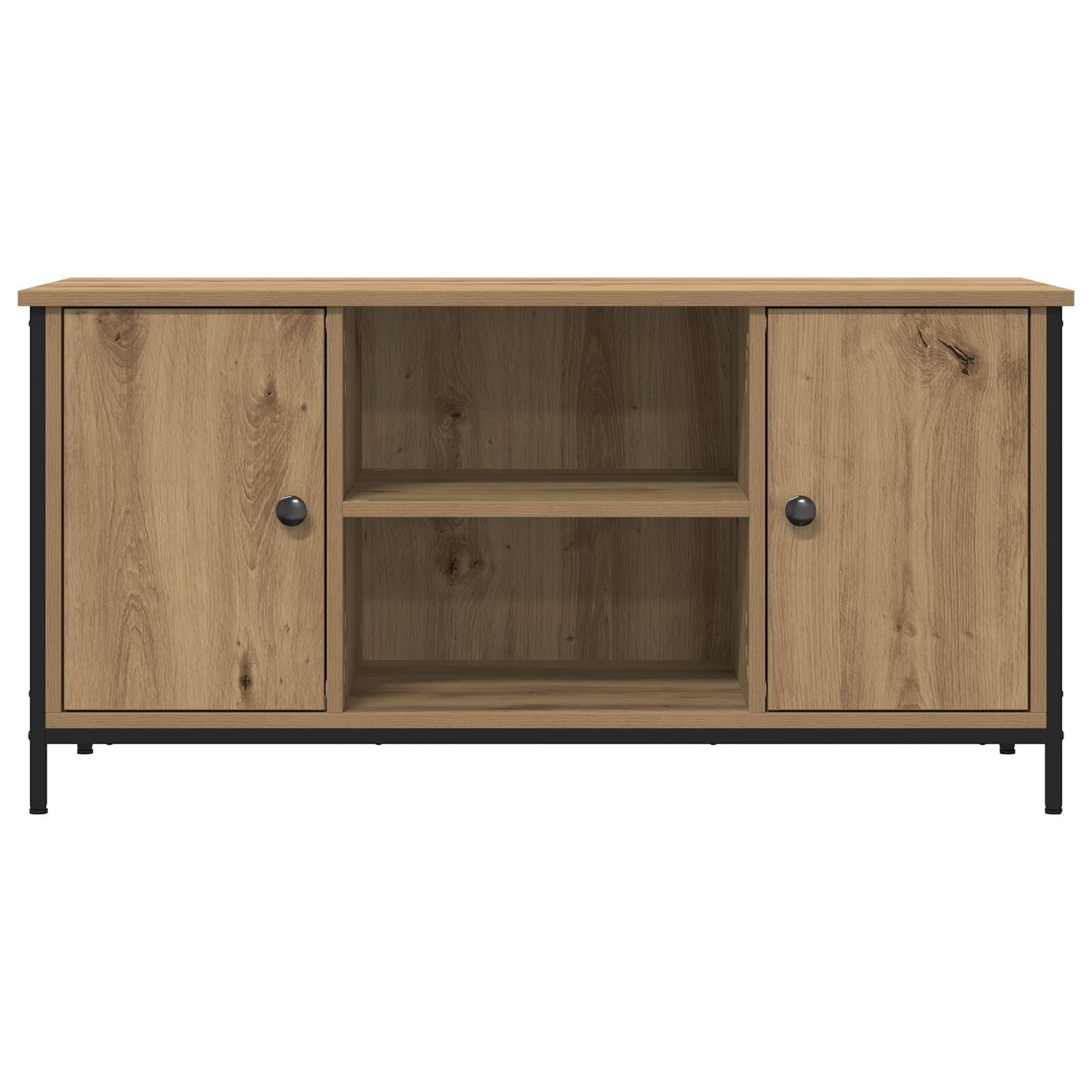 The Modern Solid Oak TV Stand is a fab mix of style and practicality that enhances the feel of any living room. Made from engineered wood with solid oak parts, it has a smooth matte finish with steel accents for a slick, contemporary look that fits in with loads of home styles. Ample Storage: With two roomy shelves made of solid oak, this TV stand has the perfect space for all your media devices, decorative items, and gaming gear. Its sturdy structure keeps everything secure and easily reachable. Stylish Design: The modern style of this TV stand adds a dash of elegance to your living room. The artisan oak finish and black steel frame tie in beautifully with any decor. Durable Construction: Built to last, the mix of solid oak and strong steel legs means this stand can take regular use while looking good, ensuring it stays in your home for years. Easy Assembly: Thanks to the simple design, you can put this TV stand together quickly with just a screwdriver, which makes it a breeze for anyone setting up their space. It’s best to have two people on hand for easier assembly. Versatile Usage: Perfect for showing off your media gear, this stand fits well in living rooms or play areas, transforming your space while keeping things organized.