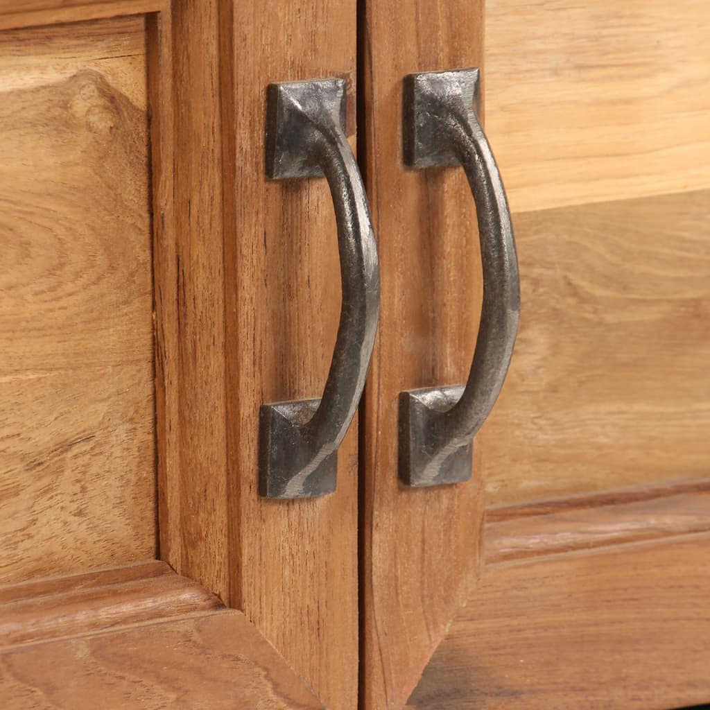 This TV cabinet exudes a rustic charm and will make a great addition to your interior. The TV stand is made of recycled teak that has been given a beautiful finish by polishing and lacquering, to give it a refined look. The beautiful wood grains make every piece of furniture unique and slightly different from the next. This TV unit has a sturdy and stable surface, on which you can place your TV, a fruit basket, a vase and other items. This lowboard features a cabinet and two storage compartments, which provide ample space for storing multimedia devices, media carriers, and any other items you'd like to keep within reach. The steel frame adds the cabinet's sturdiness and stability as well as its industrial style. This item is already assembled; no assembly is required. Important note: The colours vary from piece to piece, making each piece unique. The delivery is random, ensuring the exclusivity and individuality of your product.