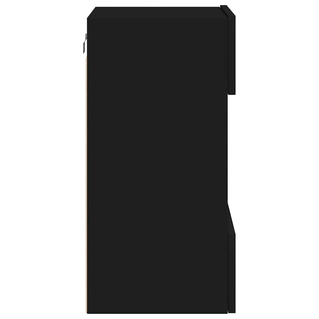 These TV wall cabinets are the perfect solution for your living space to maximise space and keep the floor areas uncluttered. Durable material: The engineered wood is of exceptional quality with a smooth surface and also features strength, stability and resistance to moisture.RGB LED lights: The wall media cabinet is equipped with vibrant RGB LED lights. With various customisable menus, you can effortlessly change the colour of the lights and even set them to adjust automatically. These LED lights not only enhance the contemporary look of the floating TV unit but also add to its trendy appeal.Ample storage space: The TV wall unit has a glass shelf and 2 compartments behind the doors that offer ample space to keep your small items like books, DVDs, and magazines neatly organized and within reach.Versatile: The cabinet is multifunctional and can be used as a TV wall cabinet or a wall-mounted bedside cabinet. You can also combine it with other cabinets to create a stunning living wall.Wall-mounted design: This LED cabinet can be wall-mounted to add extra storage space. That way, you can maximise your floor space and keep the area clean. Good to know:Screws and plugs for inside the wall are not included. We advise to find and use screws and plugs suitable specifically for your walls. If you're not sure, you can consult with a professional. Please read and follow each step of the instructions.The product has a USB connector that requires a certified 5V USB power source (not included).