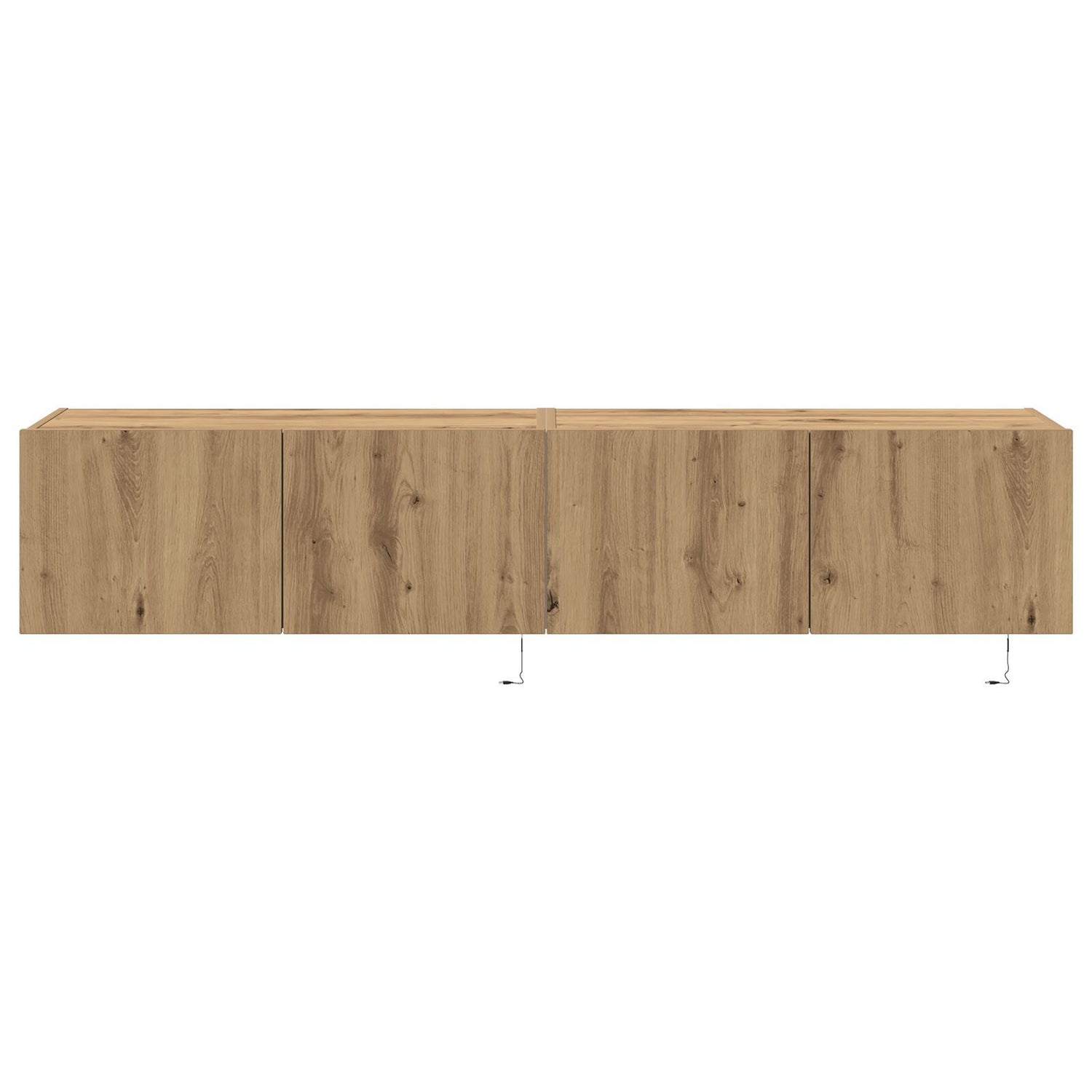 This Artisan Oak Rectangular TV Stand gives you a classy way to store your media, combining modern style with artisanal charm. The smooth lines and natural wood finish create a warm vibe that suits any living area, making it perfect for those who want a stylish look that's also practical. Designed for modern living, the integrated LED strip lighting highlights your favorite displays, creating a great vibe for entertaining guests or just kicking back in front of the telly. Made from quality engineered wood with a stunning artisan oak finish, this TV stand looks good and promises to last, resisting wear and tear over time. The wall-mounted design saves precious floor space, making it a clever pick for flats or smaller setups, while keeping your home looking tidy. At 80 x 35 x 31 cm, it fits most TV sizes easily and has loads of space for media devices, gaming consoles, and decoration, making it a handy addition to your living area. With two hinged doors, it gives you hidden storage to keep everything organized and out of sight, helping you maintain a neat look in your media space.