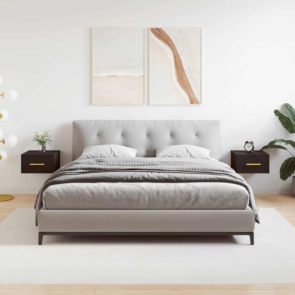 These wall-mounted bedside cabinets are meant to be a decorative as well as a practical extension to your home decor. Durable material: The engineered wood is of exceptional quality with a smooth surface and features strength, stability, and resistance to moisture.Ample storage space: The side cabinet offers handy storage space for keeping your various daily essentials well-organised and within easy reach.Wall-mounted function: The floating bedside cabinet doesn't take up any floor space. You can hang it on the wall easily.Displaying function: You can also place your favourite photos, decorations or flowers on top of the cabinet to enrich your life. Good to know:Screws and plugs for inside the wall are not included. We advise to find and use screws and plugs suitable specifically for your walls. If you're not sure, you can consult with a professional. Please read and follow each step of the instructions.