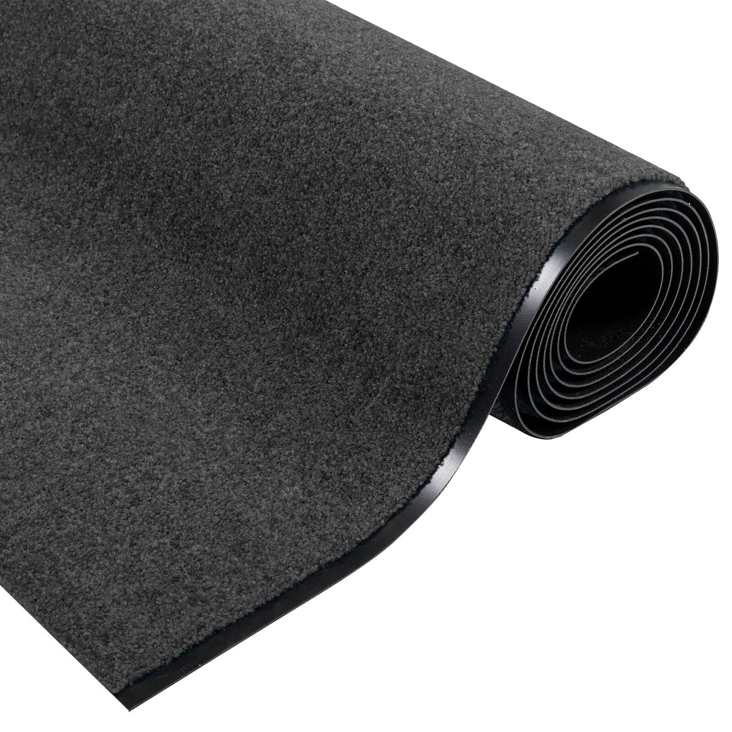This doormat, made from tough polyamide, keeps dirt and moisture at bay, making it a must-have for any entryway or outdoor area. Its modern design in an anthracite grey and soft texture fits right in, whether in a stylish flat or a warm home, giving you practicality with a dash of style. Non-Slip Design: This doormat has a special non-slip backing to keep it steady, making it safer on slippery surfaces like porches. This is super handy when it rains and water makes things slick. You can relax knowing this mat stays put. Machine Washable: One of the best things about this doormat is how easy it is to look after; it's machine washable. Just throw it in the washing machine, and it'll stay fresh without any hassle. Soft Touch Fabric: Made from soft polyamide, this doormat feels lovely underfoot, adding a touch of luxury to your space while being comfy to walk on, whether indoors or out. Versatile Use: This doormat is all about versatility, perfect for bedrooms, living rooms, offices, or balconies. It earns its keep by catching dirt from shoes and giving your decor a boost too. Dimension Versatility: At 350 x 120 x 0.9 cm, this rug is big enough for any doorway but slim enough not to block foot traffic. Its rectangular shape makes it easy to fit in tight spots or larger entryways.